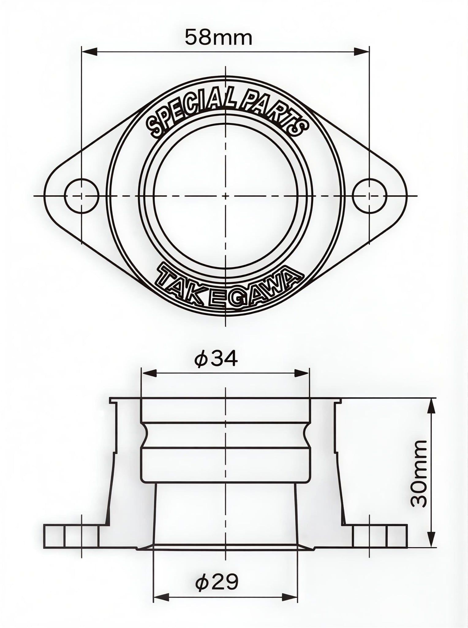 + Khoảng cách tâm lỗ bắt bu lông co cao su: 58mm