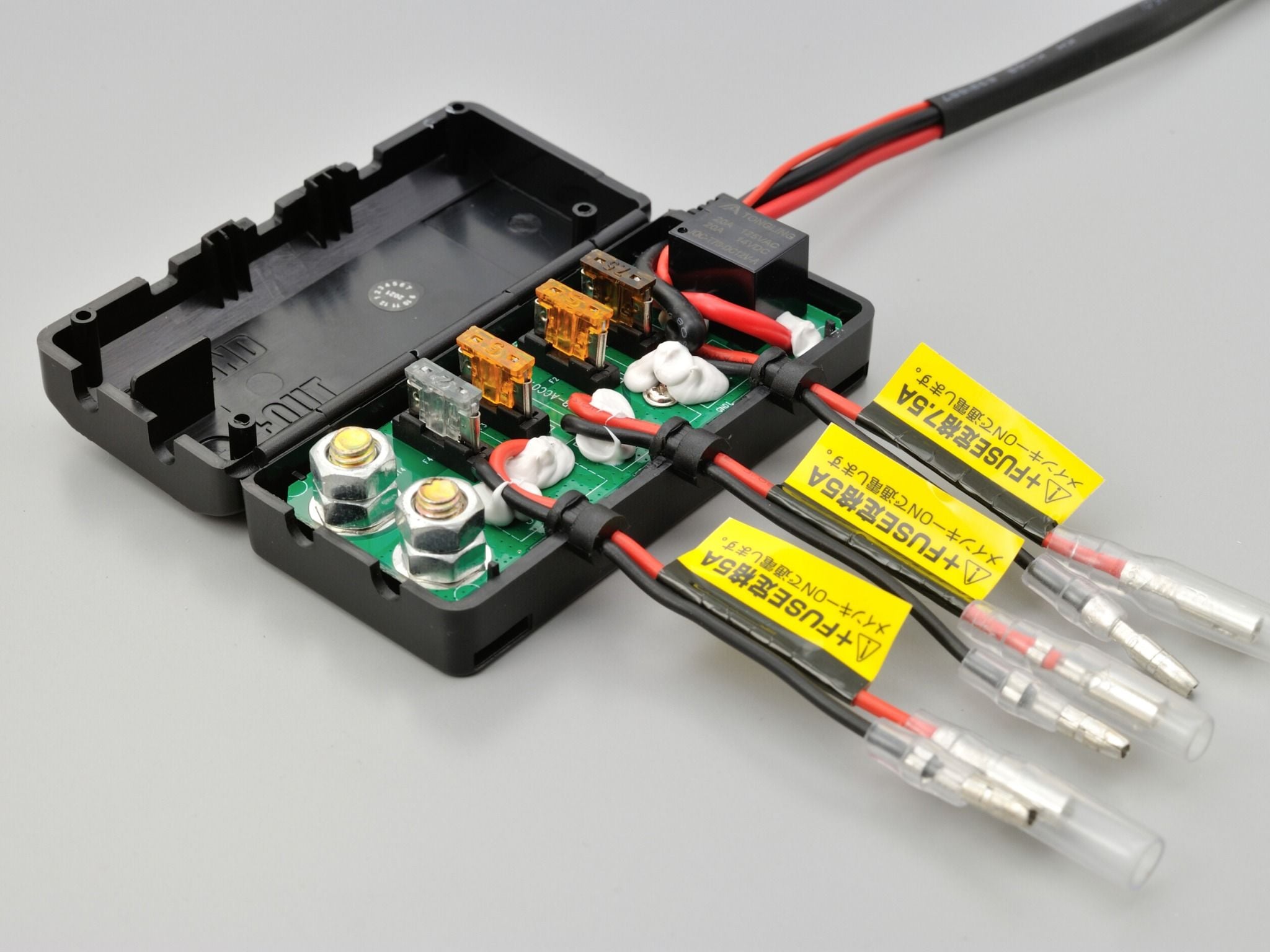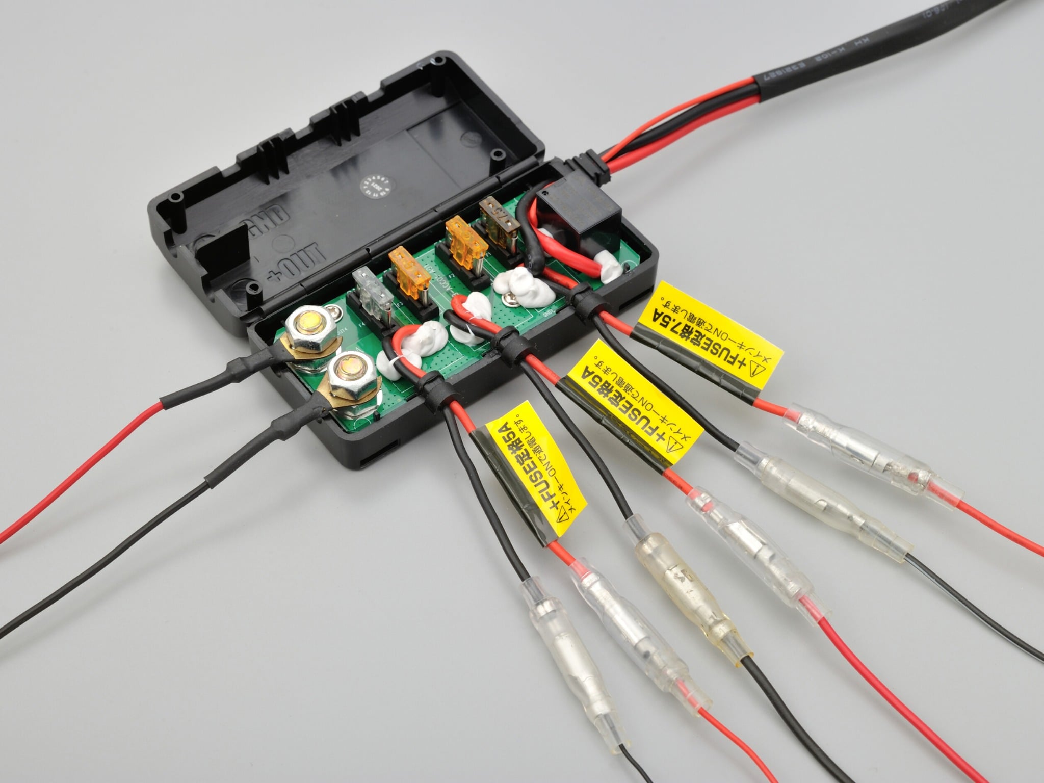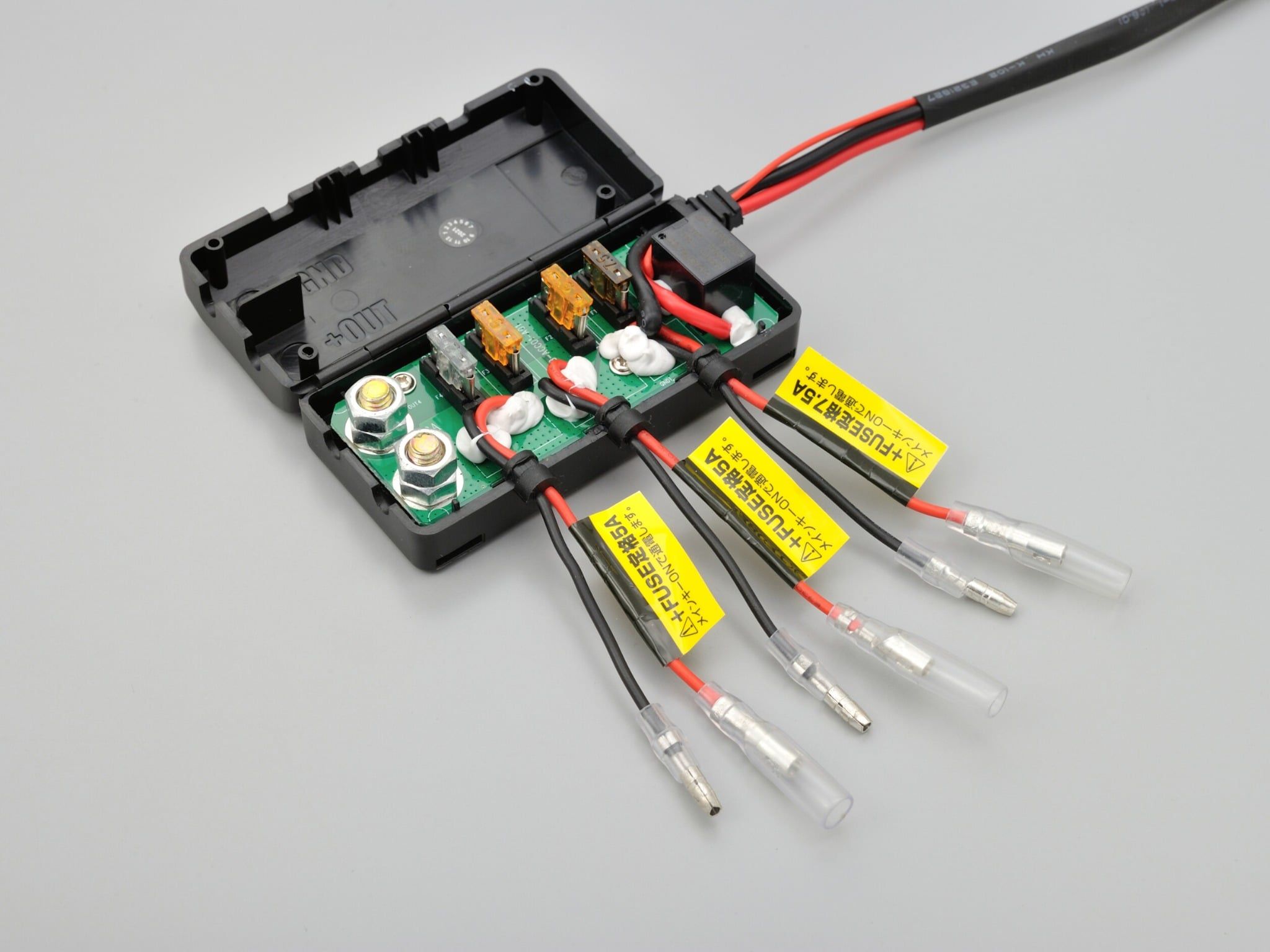 + D-UNIT 4 cổng: 1 cầu chì 2A, 2 cầu chì 5A, 1 cầu chì 7.5A