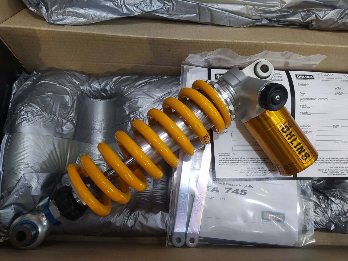 ● OHLINS có sản phẩm này phiên bản khác mã KA 744 dùng cho KAWASAKI NINJA 400 (2018-2022) và KAWASAKI Z400 (2019-2021) (chi tiết tại đây)