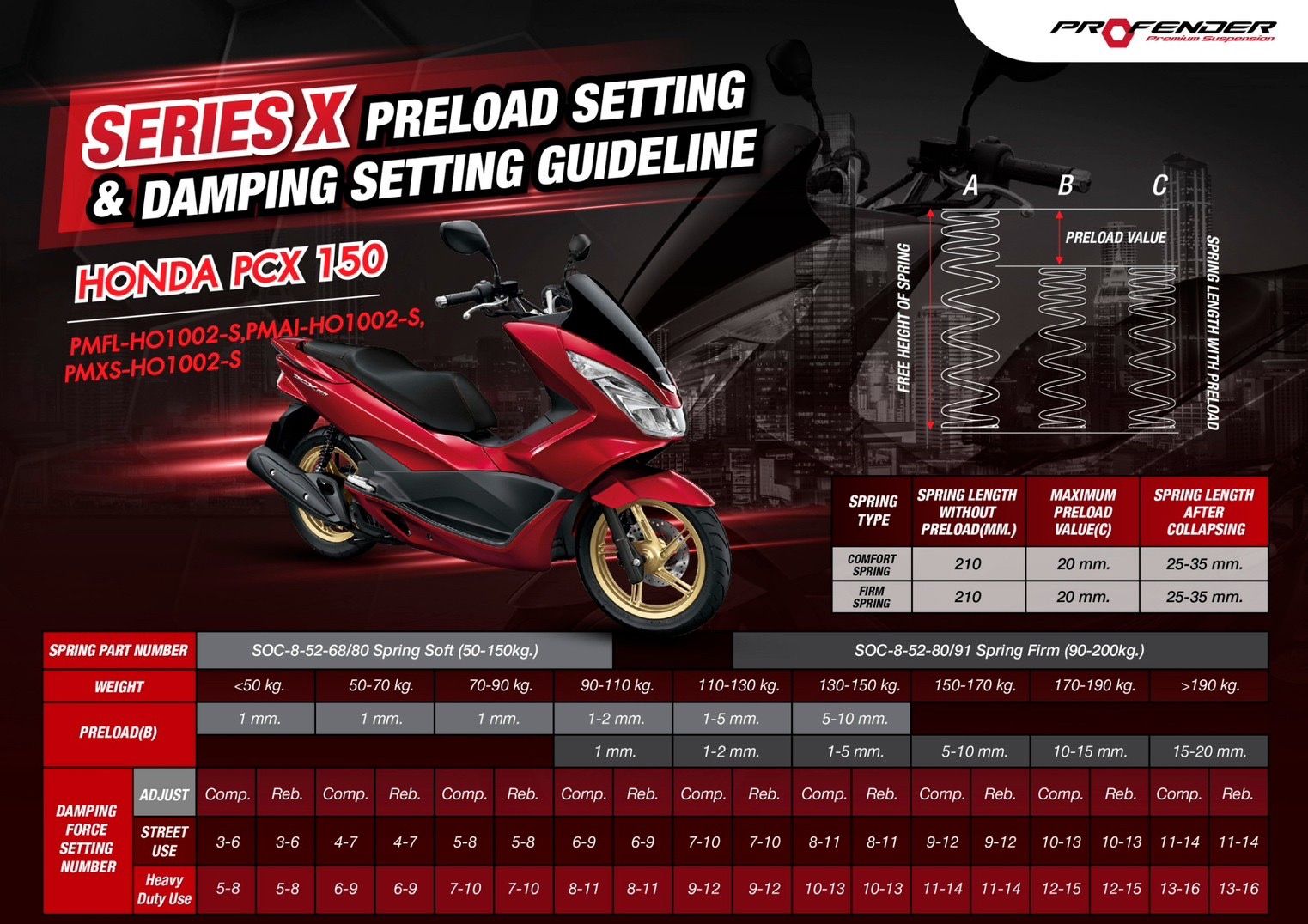 Mã: PMXS-HO1002-S(BK) Thương hiệu: Profender Loại: Giảm xóc/ phuộc